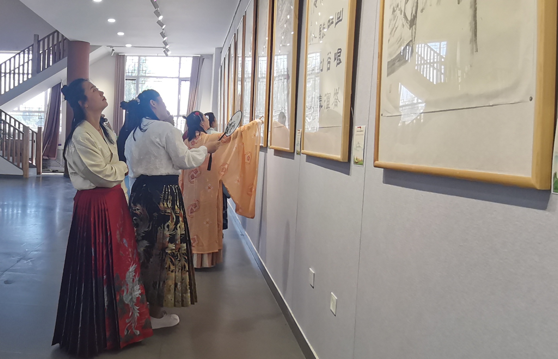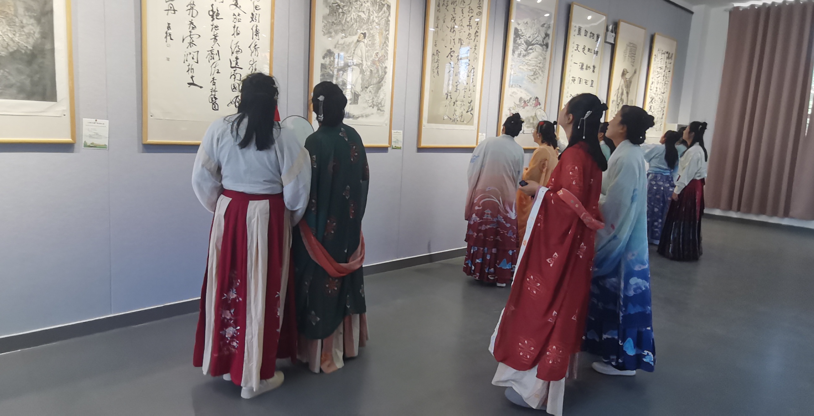 活动期间,参加活动的每个人头梳精美发髻,身穿靓丽汉服,将汉服与传统节日融合。居民朋友在省级非遗传承人刘瑰华老师的指导下,亲自动手剪出各种精美的中秋元素图案,如明月、玉兔等,感受非遗剪纸艺术的独特魅力与浓厚的节日氛围。同时在书画展厅,参与者身着汉服漫步其中,仿佛穿越千年。他们在欣赏画作的同时,也对传统绘画艺术有了更深的感悟。